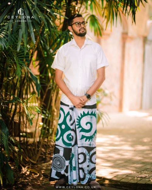 Modern yet rooted in tradition, the Emerald Mosaic Women’s Batik Lungi features a striking blend of deep green, classic black, and crisp white in bold batik panels. Inspired by Sri Lankan heritage motifs with a contemporary twist, this design creates a confident and stylish silhouette.