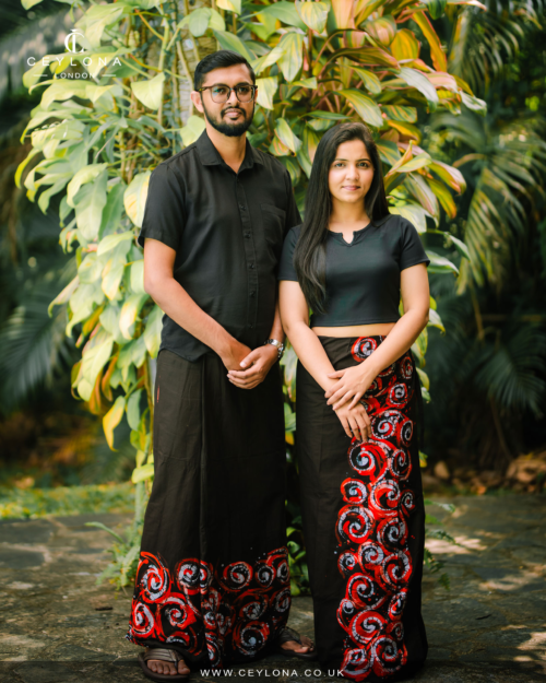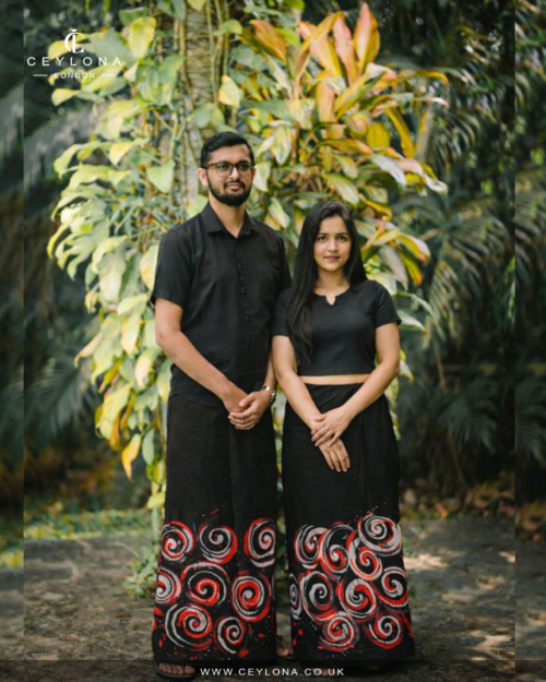The Crimson Red Batik Sarong features a deep black base enhanced with striking red and white spiral motifs along the hem. Inspired by festive evenings and cultural celebrations, this handcrafted piece blends Sri Lankan batik heritage. Lightweight, breathable, and beautifully tailored, it is perfect for New Year celebrations or special occasions in the UK.