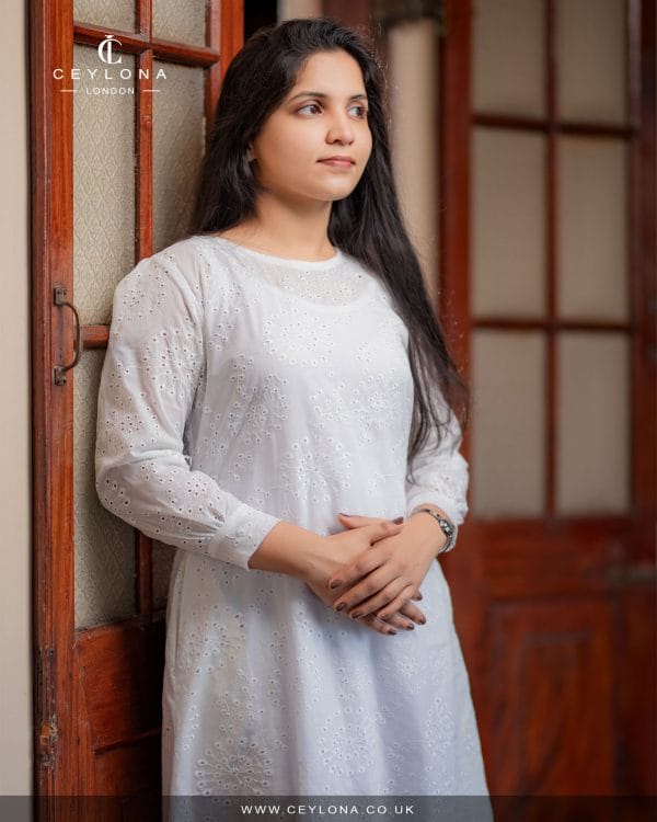 Made from breathable Culton cotton with delicate eyelet patterns and soft puff sleeves, it reflects grace, peace, and timeless tradition – perfect for honoring a beautiful day of light and compassion.