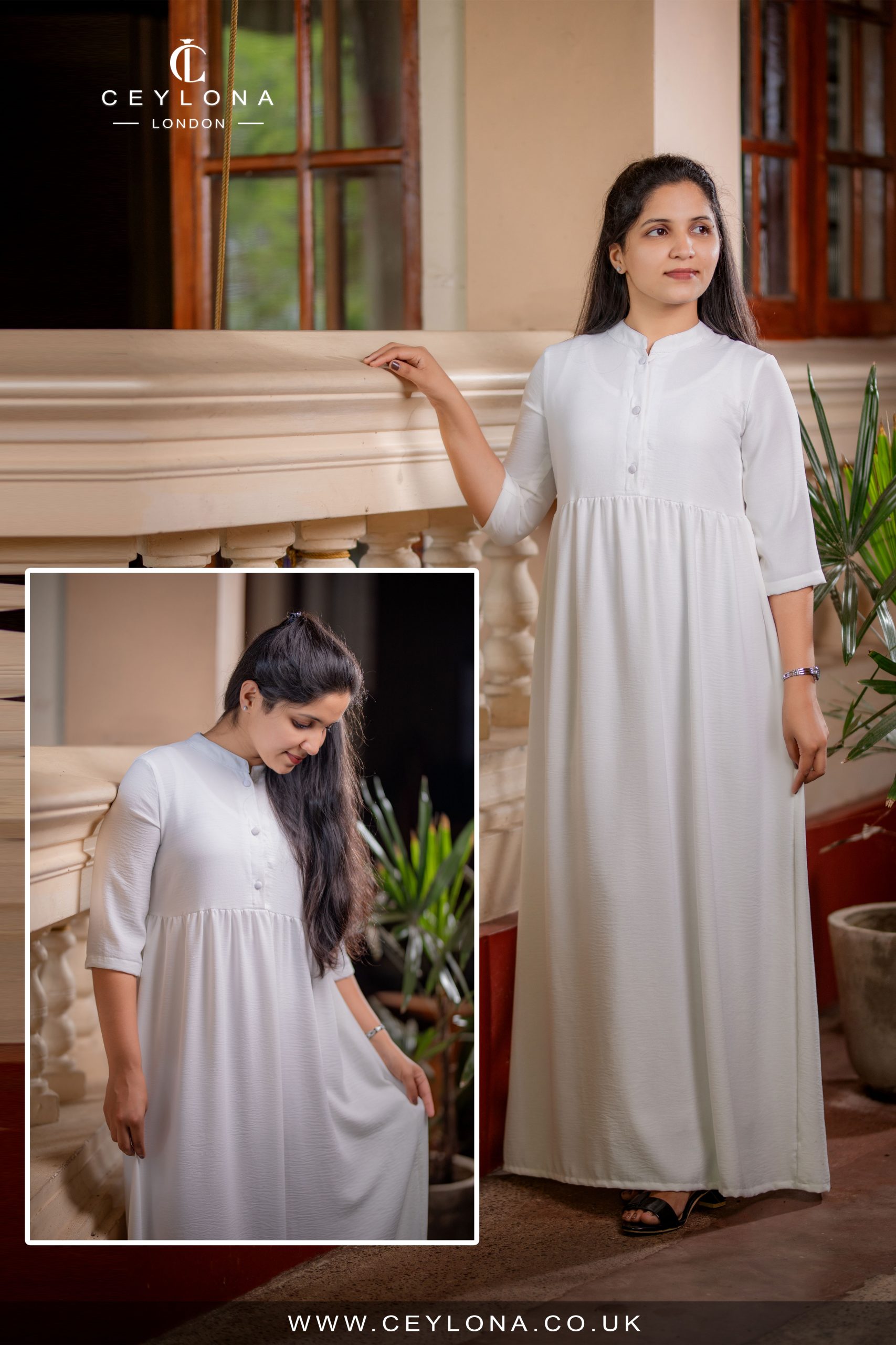 Minimalist yet deeply graceful, the Sacred Purity Dress is crafted for serene ceremonies. With its soft flowing fabric, gentle gathers, and a modest buttoned neckline, it symbolizes purity, humility, and peace.