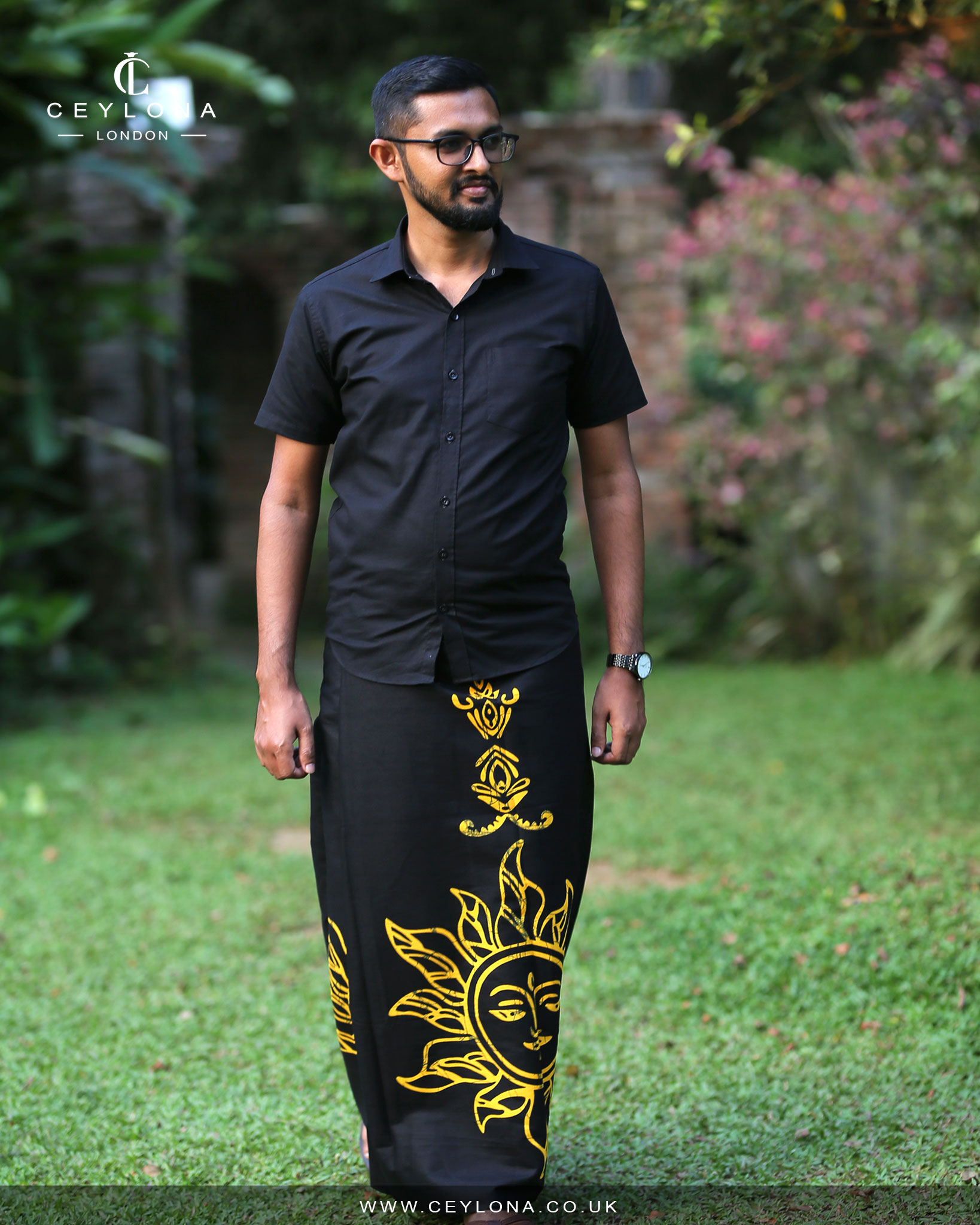 Channel warmth and positivity with the Golden Sun printed Sarong. This black cotton sarong is adorned with a bold yellow sun motif, symbolizing energy, strength, and optimism. Handcrafted with traditional artistry, this piece blends cultural heritage with modern elegance, making it a standout choice for casual wear, cultural events.