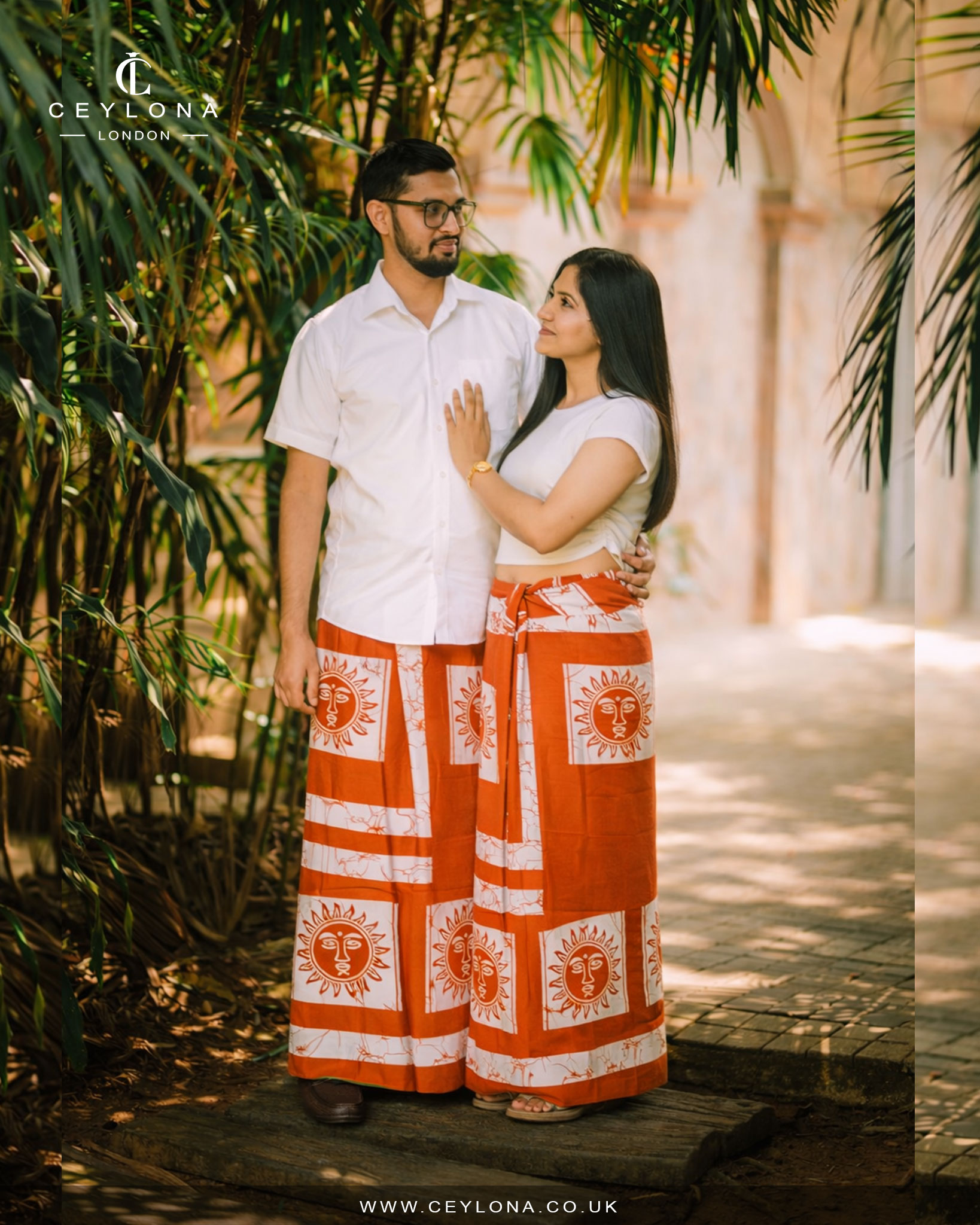 Vibrant and expressive, the Sunfire Heritage Batik Printed Sarong features a bold orange base highlighted with striking white sun-face motifs. Inspired by warmth, strength, and cultural symbolism, this design blends traditional Sri Lankan batik artistry with confident modern style.